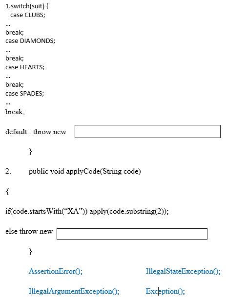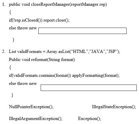Identify the Exceptions that SHOULD be thrown in the situations shown below.